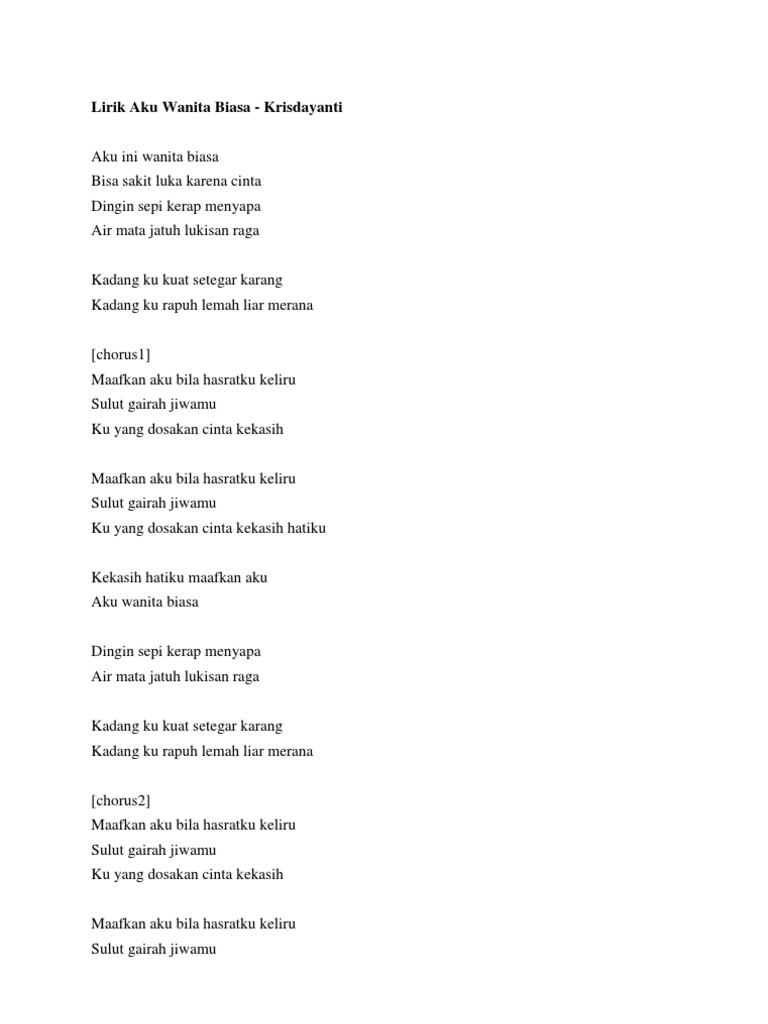 Lirik Aku Wanita Biasa